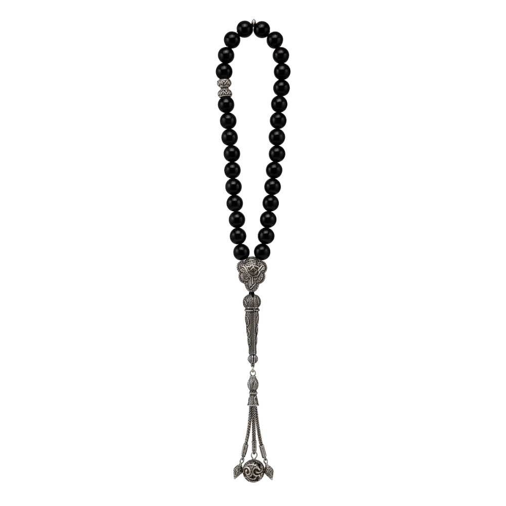 Bazı aksesuarlar sadece tamamlayıcıdır, bazıları ise sahibinin karakterini fısıldar. “Kendini Kontrol Taşı” olarak bilinen oniks, mat ve pürüzsüz siyahlığıyla 2026 koleksiyonumuzun en karizmatik parçalarından biri olarak öne çıkıyor. 925 ayar gümüşün parlaklığıyla yaratılan kontrast, bu tesbihi sadece bir çekim aracı değil, bir duruş sergisi haline getiriyor.