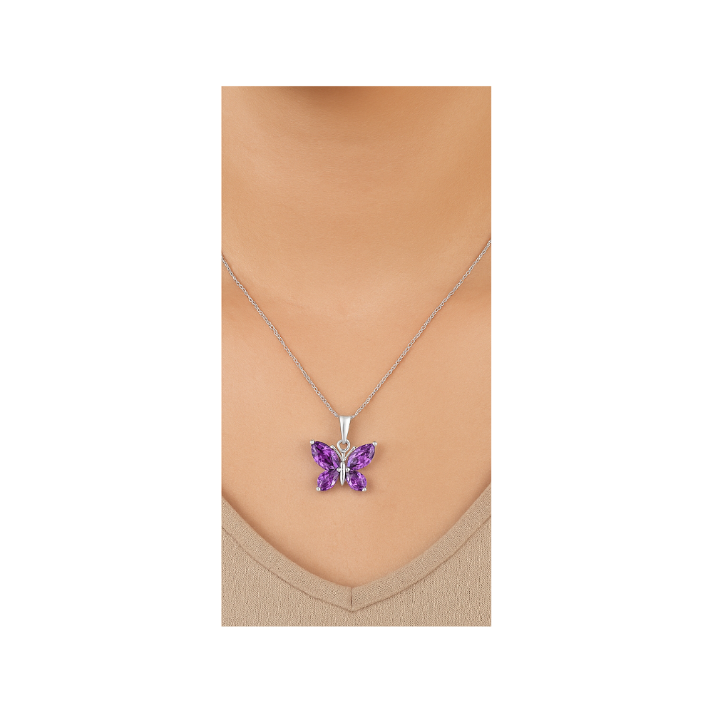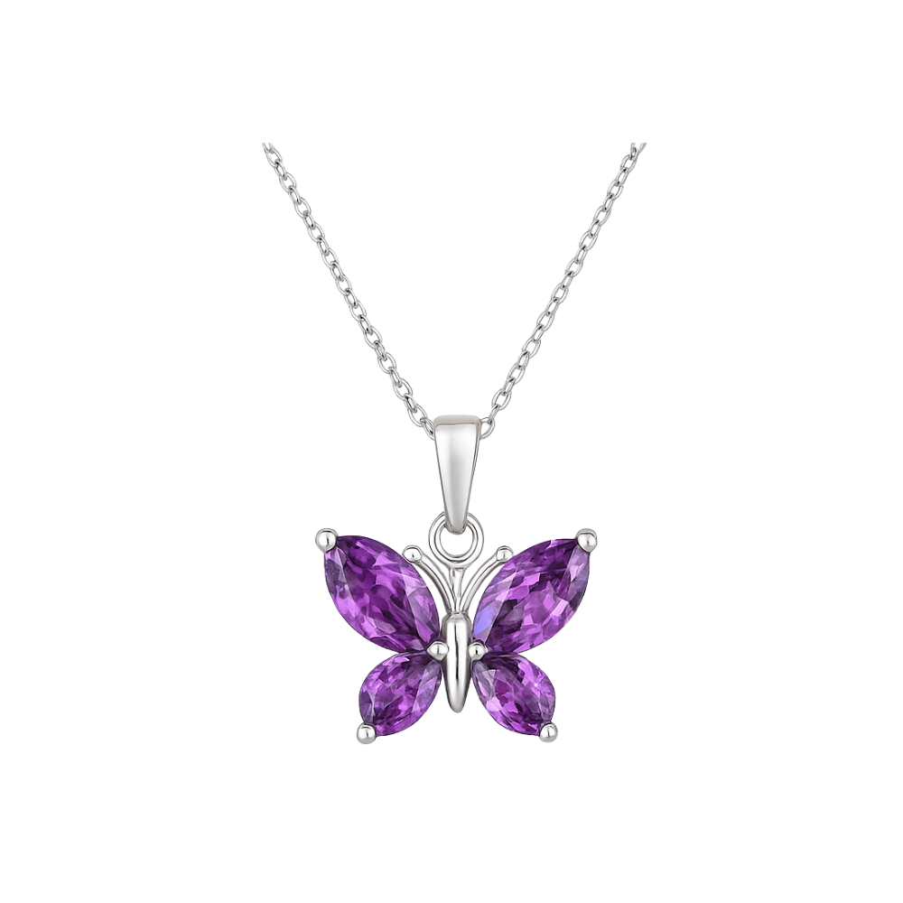Mor Zirkon Taşlı Kelebek Kolye