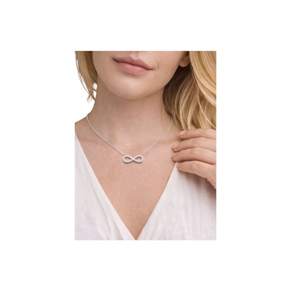 Kolyenin merkezindeki sonsuzluk figürü, titizlikle yerleştirilmiş zirkonyum taşlar ile bezenmiştir. Bu taşlar, gün ışığında pırıltılı bir dans sergilerken, akşam ışığında sofistike bir parıltı sunar. Tasarımın en büyük gücü, “az ama öz” felsefesinde yatar. Karmaşadan uzak, net çizgileri sayesinde hem spor-şık kombinlerinizi hem de en özel gece elbiselerinizi kusursuzca tamamlar.